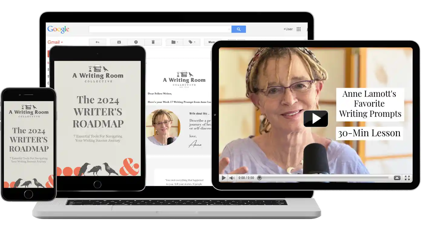 Enter your information below for immediate access to Anne Lamott's 30-minute guided video lesson and 52 weekly writing prompts delivered to your inbox. PLUS, instant download of the 2024 Writer's Roadmap e-book.